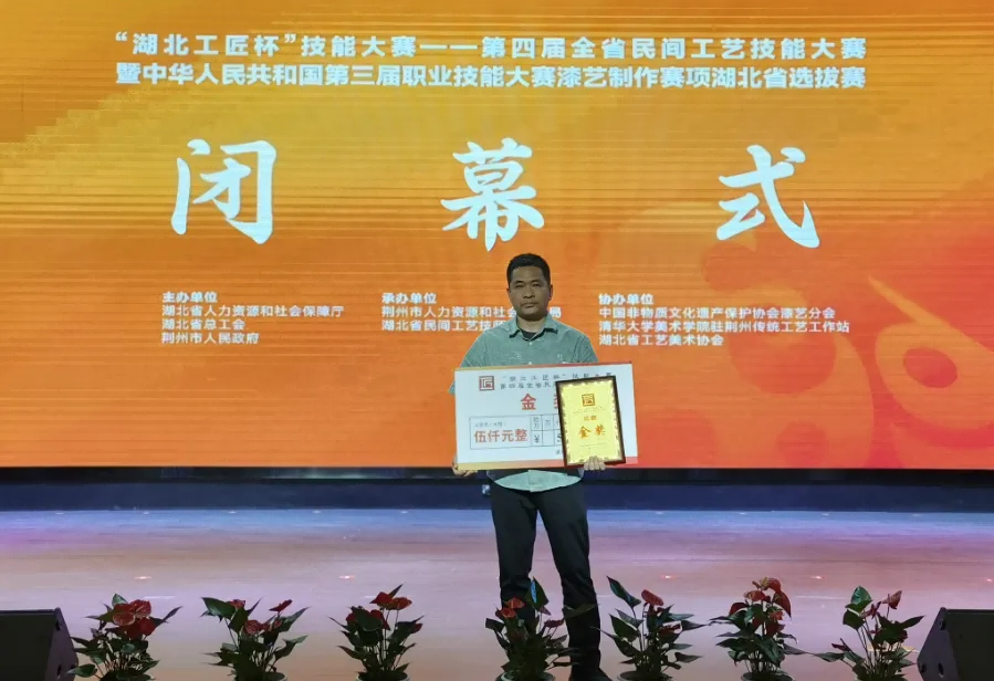 据了解,本次大赛为湖北省一类竞赛,由省人力资源和社会保障厅、省总工会主办,设置漆艺、草竹编、刺绣、木雕、根雕、泥塑、陶艺7个竞赛项目。在比赛中,张志林老师认真打磨,潜心塑造,经过一天半的激烈角逐,最终从众多选手中脱颖而出获得佳绩。据悉,金奖得主将按程序认定“湖北省技术能手”,并申报“湖北省五一劳动奖章”。张志林老师在威廉希尔中文官方网站美术学院从教二十多年来,多次在国家级和省级比赛中获得佳绩,个人作品也多次入选湖北省美术作品展览。
