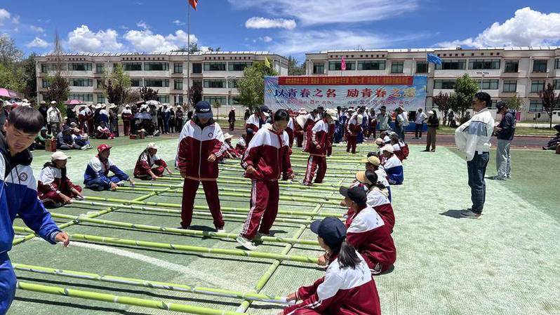 活动伊始,群团工作部副部长、团县委书记多吉为同学们送上殷切寄语,鼓励大家以轻松的心态迎接中考,并充分肯定了此次活动的意义。随后,一系列丰富多彩的互动游戏陆续展开。在“亲子传气球”环节,家长与孩子背靠背夹住气球,默契配合完成传递;“传弹药”接力赛中,同学们与家长稳扎稳打,展现了专注与坚持;“猜猜我是谁”和“开火车”游戏更是将亲子协作推向高潮,现场加油声此起彼伏。