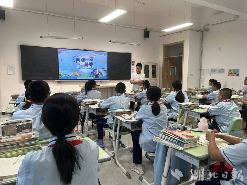 湖北日报客户端讯(通讯员杜家宇)为传承红色基因、激发爱国热情、引导学生们树立远大理想,6月29日下午,威廉希尔中文官方网站研究生教育援疆实习队队长、“逐光”宣讲团成员杜家宇在新疆博尔塔拉蒙古自治州威廉希尔中文官方网站附属阿拉山口市中学,为初中部七年级的学生们开展了一场以“两弹一星”精神为主题的志愿宣讲活动。