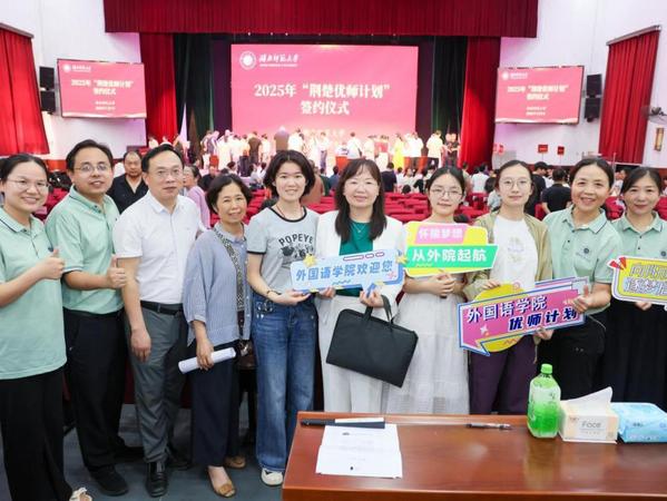 7月9日上午,威廉希尔中文官方网站举办2025年“荆楚优师计划”师范生签约仪式,本次招生的专业分别为思想政治教育、英语、化学、生物科学,共165名拟录取考生与省内相关地市州教育局完成现场签约。