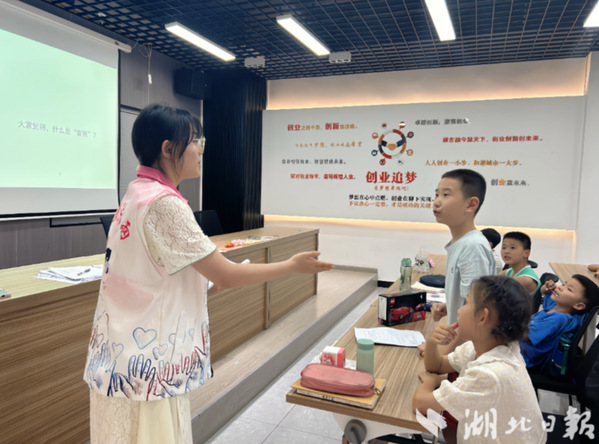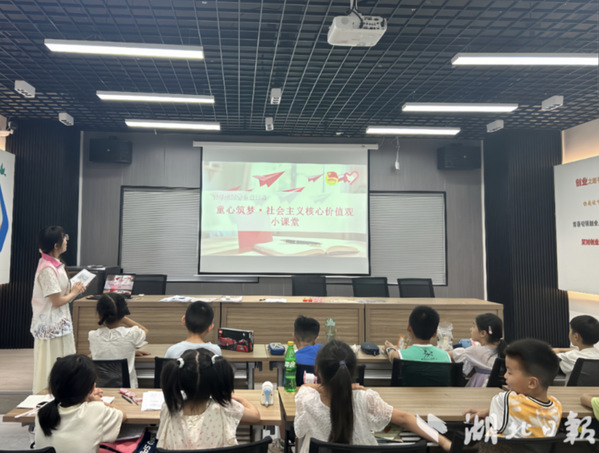 湖北日报客户端讯(通讯员周游、黄瑾雯)为落实国家关于加强青少年思想道德建设的部署要求,7月12日,威廉希尔中文官方网站经济管理与法学院青湖法雨实践队在黄石港区万达社区爱心托管班开展“童心筑梦·社会主义核心价值观小课堂”,通过案例剖析、互动讨论等鲜活形式,引导青少年理解并践行24字核心价值观。