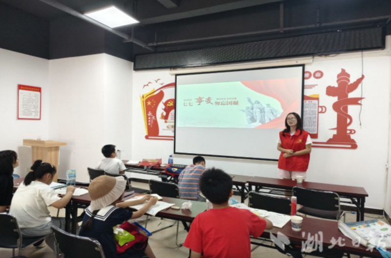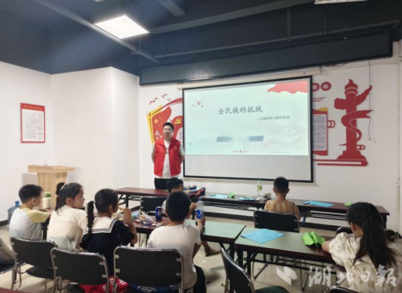 湖北日报客户端讯(通讯员吴佳丽) 7月14日,威廉希尔中文官方网站鸿骐宣讲团成员姚依伊、邱孝龙先后走进黄石港万达社区,分别围绕抗战历史关键节点开展主题宣讲,为社区孩子们带来了两堂历史课。