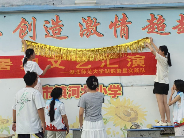 文艺汇演前一天,队员们一起布置舞台