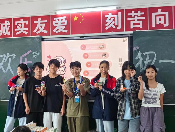 心理健康安全筑牢成长防护网。实践队以“自我认知—人际互动—情绪管理—危机应对”为轴,构建青春期心理课程体系。在“发现闪光的我”课堂上,龙一涵通过“20个我是谁”自测与“优点轰炸”游戏,让八年级刘同学在同伴点赞中破除自卑:“原来我身上有这么多星光!”而“反对校园霸凌”课中,覃思湘用揉皱的白纸具象化心理创伤,借情景剧还原冲突现场,引导学生精准识别霸凌信号并掌握应对策略。“心语信箱”里,一张字条悄然绽放:“您比父母更懂如何接住我的情绪。”这份信任让队员们领悟到:教育不仅是知识的传递,更是心灵的共鸣。李玉珠在反思日志中写道:“曾经以为自己是掌灯者,如今才懂,先成为倾听的树洞,才能照亮归途。”