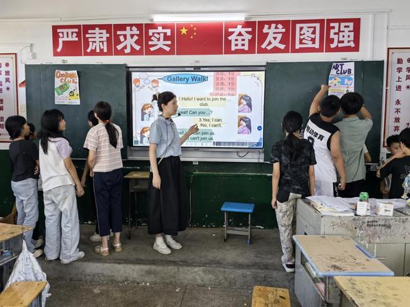 支教老师詹欣怡与同学们一起探究“Gallery Walk”教学法 龙一涵供图