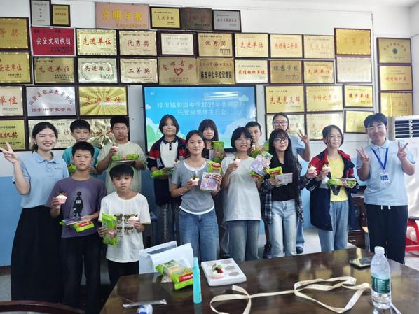 实践队为排市中学爱心托管班学子举办集体生日会 龙一涵供图