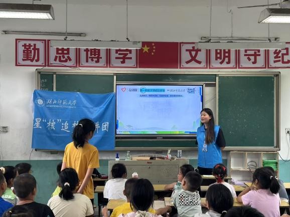 核技术的“隐形应用”让孩子们惊叹不已。张琬婷在排市镇明德小学讲安检技术:“火车站的安检机,就是用少量射线看包裹里有没有危险物品,大大提高效率。”杨银涛在浠水县兰溪方铺小学举了更多例子:“医院用核技术治疗癌症,食品用辐射保鲜,连烟雾报警器里都有小小的放射源。”当他问“谁用过核技术产品”,几乎所有孩子都举起了手——他们不知道,每天接触的世界里,藏着这么多核能的“小秘密”。