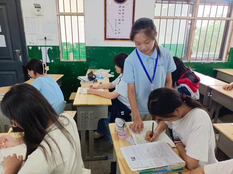 支教老师龙一涵在指导学生完成暑假作业。吕兴鹏供图