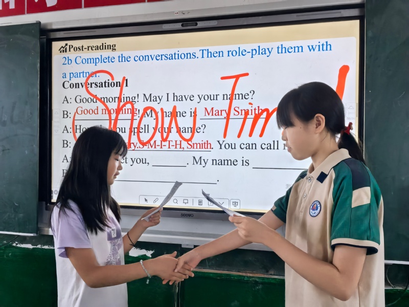 两位同学在听后环节进行角色扮演。詹欣怡供图