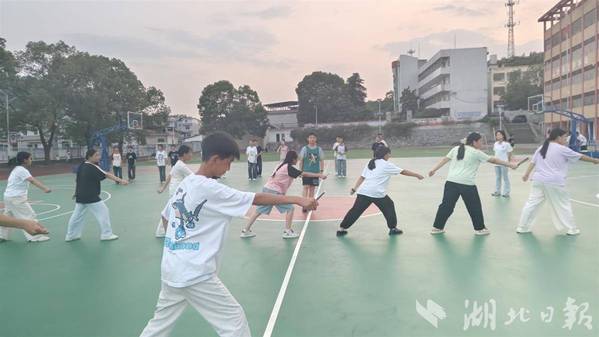 如何安全有效地开展国防教育?“爱童行”实践队交出了创新答卷。实践队设计了一套适合青少年的武术训练课程。实践队员苏家鑫将捕俘刀分解为八个基础环节,耐心示范讲解。“第一动作——弓步前刺!注意重心下沉,动作有力!”“第三动作——闪身格挡直接反击!”他边清晰讲解要领边示范。学生们跨步、前刺,动作一丝不苟,有效锻炼着他们的身体协调性与反应速度。