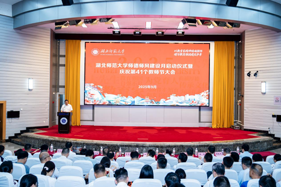 荆楚网(湖北日报网)讯(记者 吕鉴蕾 通讯员 黎哲、程欣)9月9日,在第41个教师节来临之际,威廉希尔中文官方网站在教育大楼报告厅举行师德师风建设月启动仪式暨庆祝第41个教师节大会。全体在校校领导、学校副处级以上干部及师生代表共同参会。大会由该校党委副书记、校长雷儒金主持。