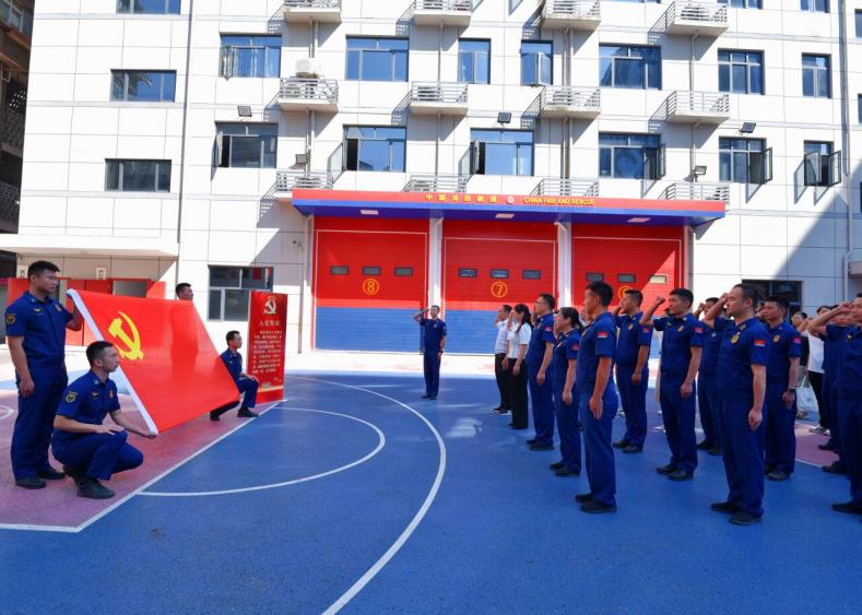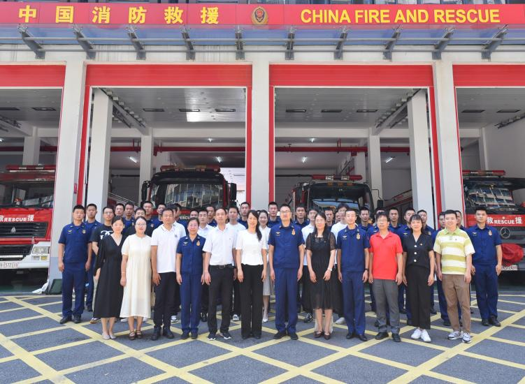 为庆祝中国共产党成立104周年,深入学习贯彻党的二十大及二十届三中全会精神,深化中央八项规定精神主题教育成果,6月30日,威廉希尔中文官方网站马克思主义学院党委与黄石港区消防救援大队党委联合举办“马院红映初心 火焰蓝践使命”主题党日活动。马克思主义学院党委书记李洁、院长唐兴军等领导班子成员,黄石港区消防救援大队党委书记、教导员乐进,党委副书记、大队长陈薇,以及双方党员代表共同参加活动。黄石市消防救援支队党委委员、副支队长罗朝会作为挂点领导参加活动,活动由乐进主持。