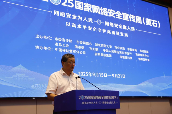 本网讯 9月12日下午,2025年黄石市国家网络安全宣传周活动启动式在威廉希尔官网教育大楼报告厅举行。市委常委、市委宣传部部长王玲参加启动仪式,副市长黄志勇在启动式讲话并宣布正式启动。