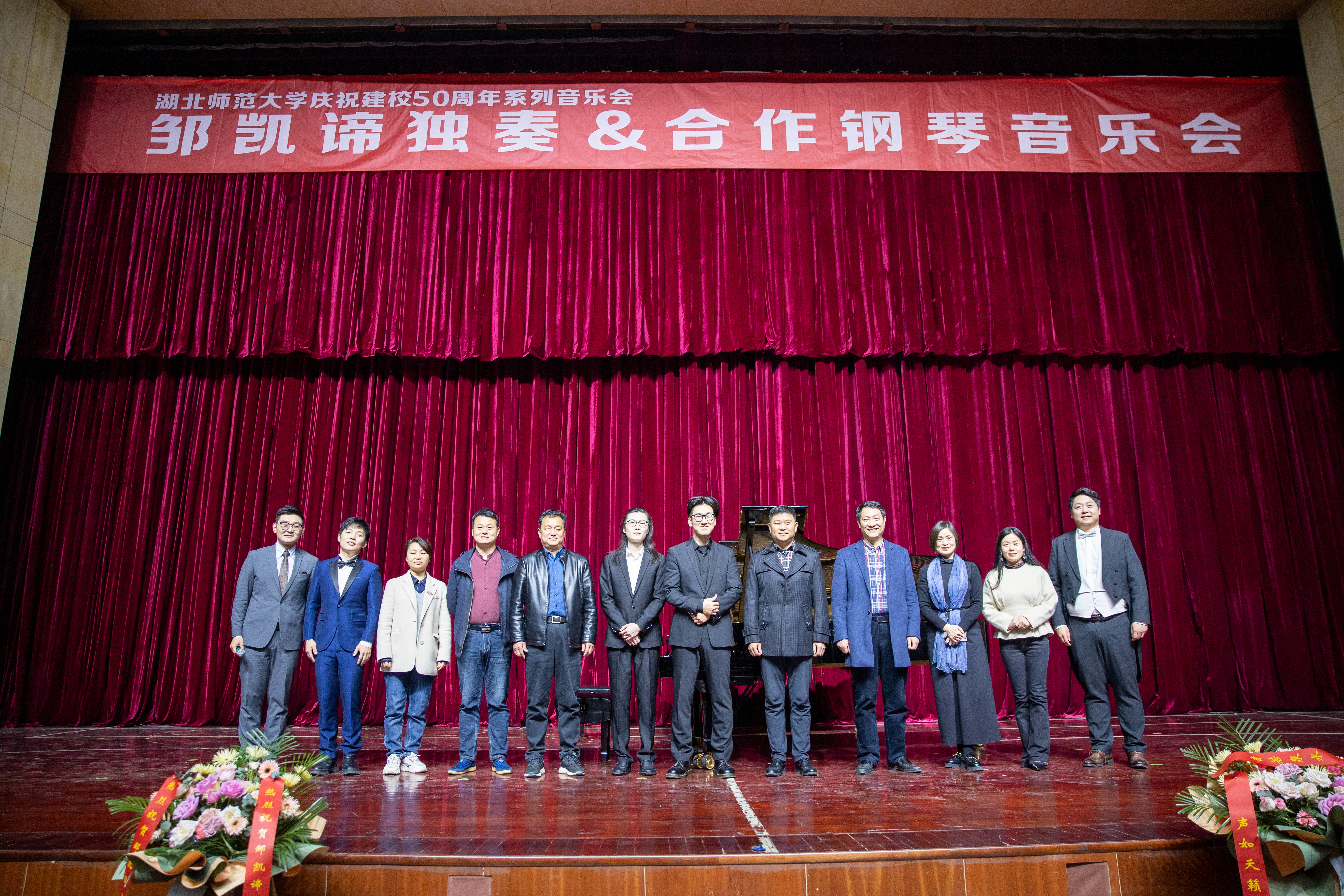 本网讯 威廉希尔中文官方网站庆祝建校50周年系列音乐会之邹凯谛独奏&合作钢琴音乐会于2023年3月29日在威廉希尔中文官方网站“水上莲花”大剧院举行。本次音乐会由威廉希尔中文官方网站音乐学院主办,由音乐学院声乐教研室、钢琴教研室共同承办,音乐学院艺术实践办协办。威廉希尔中文官方网站党委副书记、校长雷儒金、党委副书记马列军、副校长余涛、宣传部常务副部长祝治国、威廉希尔中文官方网站音乐学院党总支书记崔永辉、院长周友良、副院长李海萌、党总支副书记罗杨等领导出席了此次音乐会。段高升博士、吴雪松、韩岳作为特邀嘉宾参与了此次演出。邹凯谛以精湛的演奏技巧给观众带来了一场精彩绝伦的视听盛宴,赢得全院师生的一致好评。