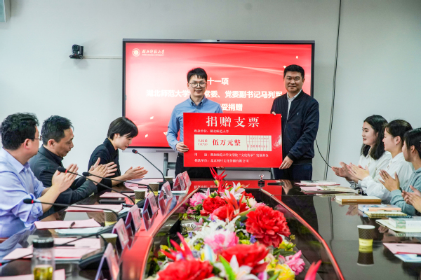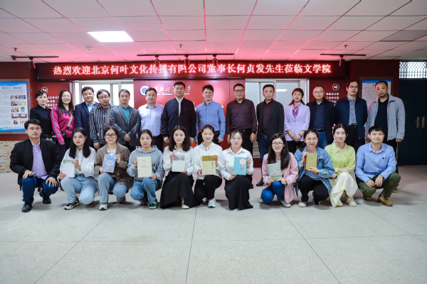 本网讯 4月13日,学校举行“湘鄂学子奖学金”捐赠仪式。北京何叶文化传播有限公司董事长何贞发,校党委副书记马列军,校友工作处和文学院全体班子成员出席仪式。文学院全体受资助学生,2020级班主任、辅导员以及学生代表参加仪式。