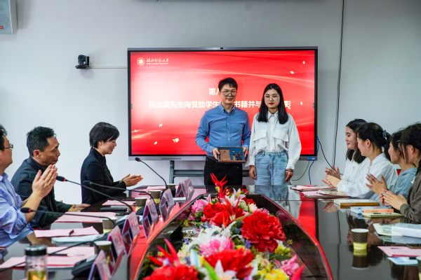 何贞发还向全体受助学生赠送了书籍,勉励她们更加努力学习,积极投身实践,不断提升自我,早日成长成才。受助学生代表、汉语言文学专业2002班陈峥向何贞发回赠了纪念品。