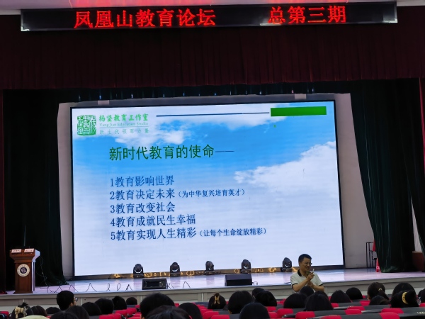 4月20日上午,凤凰山教育论坛总第3期、名校长论坛第2讲在湖师大礼堂顺利举行。本期论坛主讲嘉宾是全国中小学教育督导评估专家、深圳市十佳校长、杨坚教育工作室主持人、威廉希尔中文官方网站兼职教授杨坚。全校近500名师范生和课程与教学论教师代表参加了论坛。