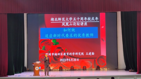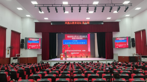 5月25日上午,凤凰山教育论坛总第6期、名师论坛第2讲在湖师大礼堂顺利举行。本期论坛主讲嘉宾是深圳市威廉希尔中文官方网站校友会党支部书记、会长王建勋。全校400余名本科师范生、教育类研究生和课程与教学论教师代表参加了论坛。