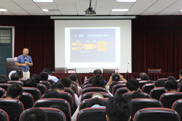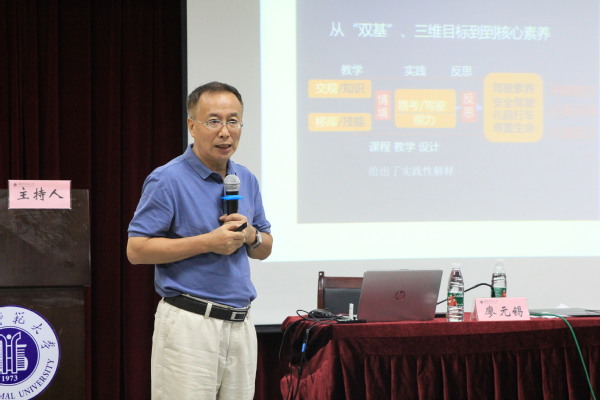 廖元锡校友的报告以“坚守与变革——新课标背景下高中物理课程教学”为题,结合高中新课程标准和新教材编写经验,解读了中国学生发展核心素养和高中物理学科核心素养的内涵,梳理了从“双基”-“三维目标”到“核心素养”的变革与坚守。系统论述了发展核心素养的课程教学阵地:立足课堂、学科课程改造、交叉课程设计。廖元锡校友在报告中还系统介绍了物理思维的基本策略、物理学的思维方法和研究方法。廖元锡校友在报告的最后重点介绍了异步教学法、对分课堂等教学方法,并希望全体物理类师范生努力成长为具有“坚守与变革”特征,形成物理思维的优秀物理教师。报告在师范生和课程与教学论教师队伍中引起热烈反响。