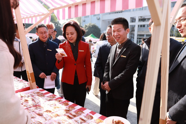 本网讯 11月17日上午,由校庆办、生命科学学院主办,学生工作部(处)、团委、教务处、创新创业学院承办,黄石市达美滋生物科技有限公司、湖北臻味永和食品有限公司协办的第七届大学生美食文化节在生科院知行广场成功举办。校纪委书记陆咏梅、职能部门领导,企业代表和师生代表参加了活动。