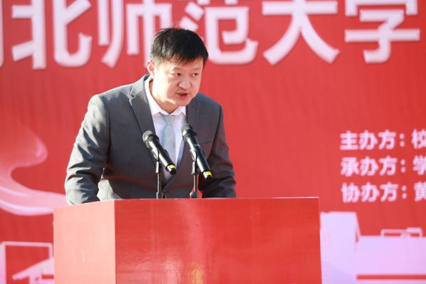 黄石市达美滋生物科技有限公司总经理雷长霖在致辞中表达了对学校建校五十周年最衷心的祝福,表示期待与学校持续保持紧密的联系,进一步深化校企合作,推进产教融合,希望为学校的发展注入企业力量。