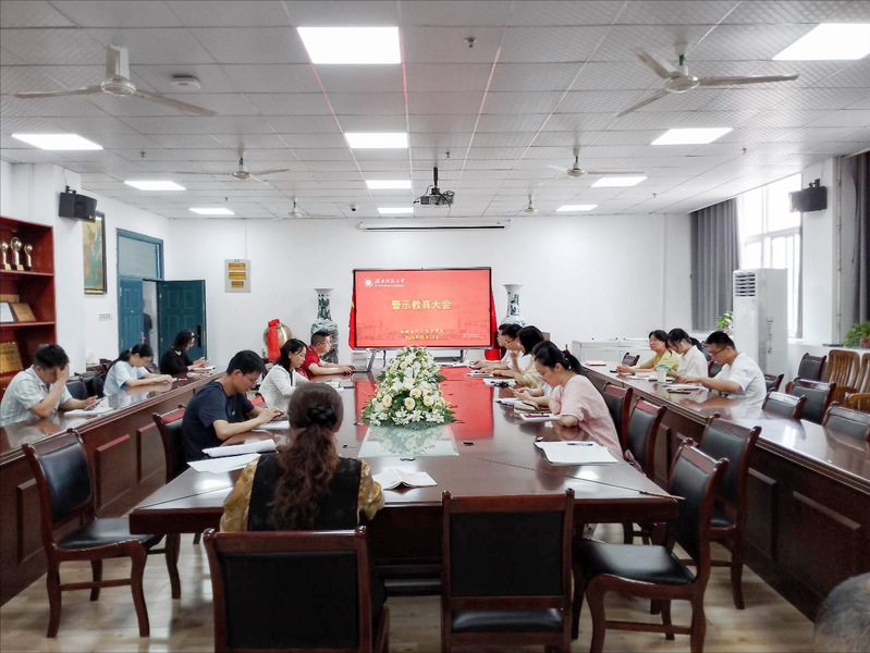 赵豪同志讲授了5月《以案说德》师德微课,带领学习了习近平总书记关于师德师风建设的重要讲话和指示精神,讲述了时代楷模黄大年同志的先进事迹,通过违纪案例,警示老师们学高为师、身正为范。施孟文同志结合学校实际,分析了高校教师违反政治纪律问题、违反中央八项规定精神问题、职称评审材料造假问题、醉驾问题等负面典型案例,警示老师们一定要敬畏岗位、守住底线。会上还集中观看了警示教育片《无所遁形》。