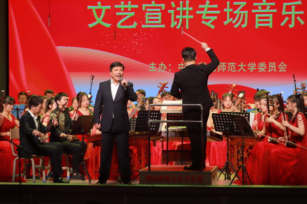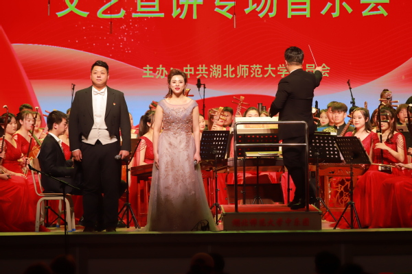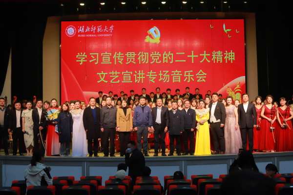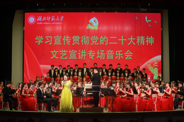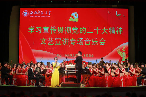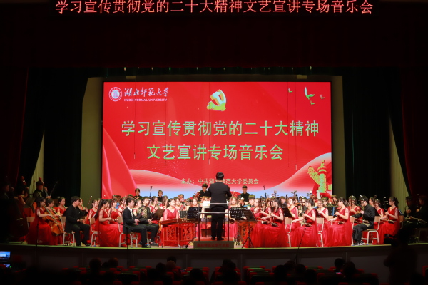 本网讯(记者 张宇菲)为深入学习宣传贯彻党的二十大精神,11月18日晚,由组织部、宣传部、科研处、团委和音乐学院承办的学习宣传贯彻党的二十大精神文艺宣讲专场音乐会在湖师大礼堂举行。
