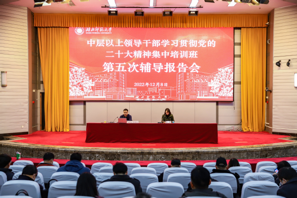 本网讯 12月8日下午,学校举行“威廉希尔中文官方网站中层以上领导干部学习贯彻党的二十大精神集中培训班”第五次辅导报告会,威廉希尔官网马克思主义学院张耀天副教授应邀作专题报告。报告会采取线上、线下的形式进行,校领导、全校正处级领导干部在教育大楼报告厅主会场参加报告会,副处级领导干部、各党支部书记及全体教职工党员在各分会场参加报告会。报告会由组织部负责人主持。