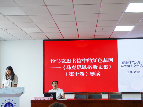 最后,与会领导共同按下了活动启动键,马克思主义学院江峰教授作题为“马恩书信中的红色基因——《马克思恩格斯文集》(第十卷)导读”首场讲堂。