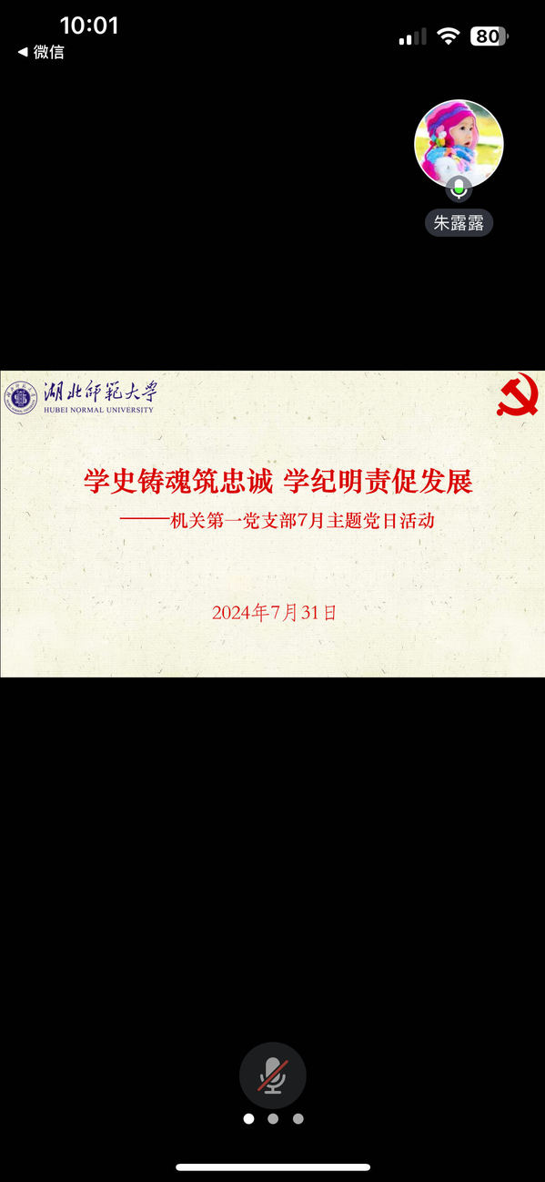 7月31日上午,机关第一党支部在线上开展主题为“学史铸魂筑忠诚 学纪明责促发展”的7月份主题党日活动。活动由党支部书记祝治国同志主持,校党委书记李宏同志以普通党员身份参加活动。