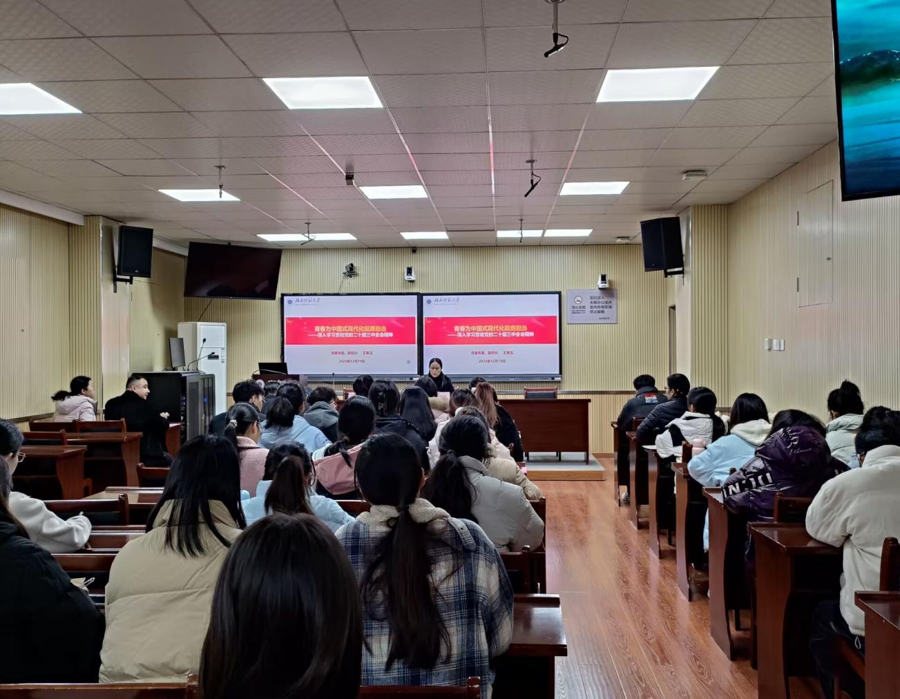 本网讯 为深入学习贯彻党的二十届三中全会精神,扎实推进学生党建工作,12月19日下午,校党委常委、副校长王赛玉参加教育科学学院学生第一党支部主题党日活动,并讲授学习贯彻党的二十届三中全会精神专题党课。教育科学学院学生第一党支部全体党员参加活动。教育科学学院领导班子成员、学生党支部书记列席活动。活动由教育科学学院学生第一党支部书记伊力扎提主持。