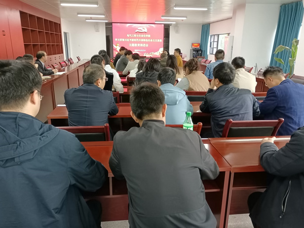 本网讯 4月27日下午,电气工程与自动化学院在学院24341会议室召开学习贯彻习近平新时代中国特色社会主义思想主题教育推进会。院党委书记丁桂兰主持会议并作辅导报告,全体教职工党员、入党积极分子参加会议。