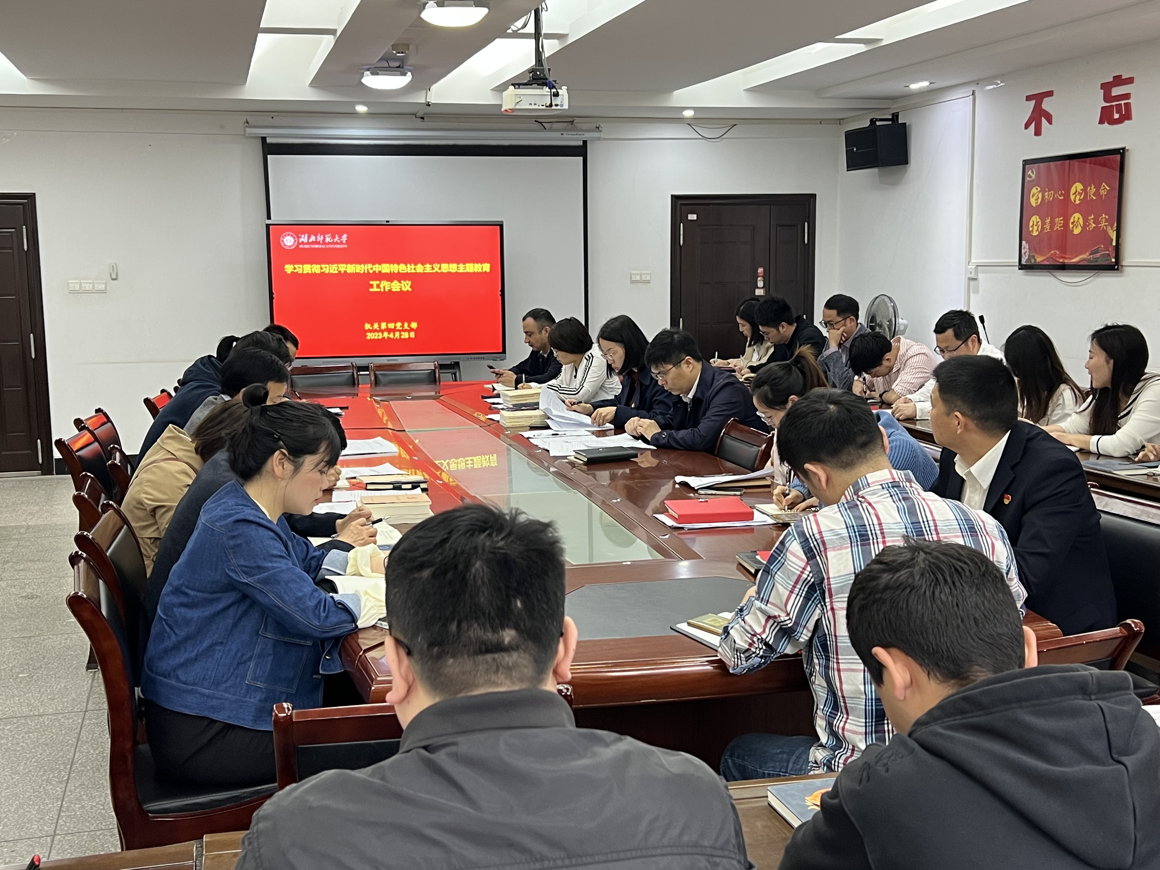 本网讯 4月28日上午,机关第四党支部在大学生活动中心314会议室开展学习贯彻习近平新时代中国特色社会主义思想主题教育工作会暨读书班学习活动。会议由支部副书记荆玉梅主持,机关第四党支部全体党员、入党积极分子参加会议。