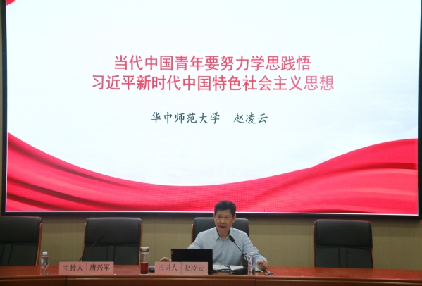 本网讯 5月4日上午,华中师范大学赵凌云教授做客威廉希尔官网50周年校庆系列学术报告会,为马克思主义学院师生做题为“当代中国青年要努力学思践悟习近平新时代中国特色社会主义思想”的专题辅导报告,同与会师生共庆“五四青年节”。黄石市委宣传部副部长、黄石市社科联党组书记罗文卫,黄石市社科联专职副主席柯荷林,马克思主义学院班子成员、师生代表参加本次报告会。会议由马克思主义副院长唐兴军主持。
